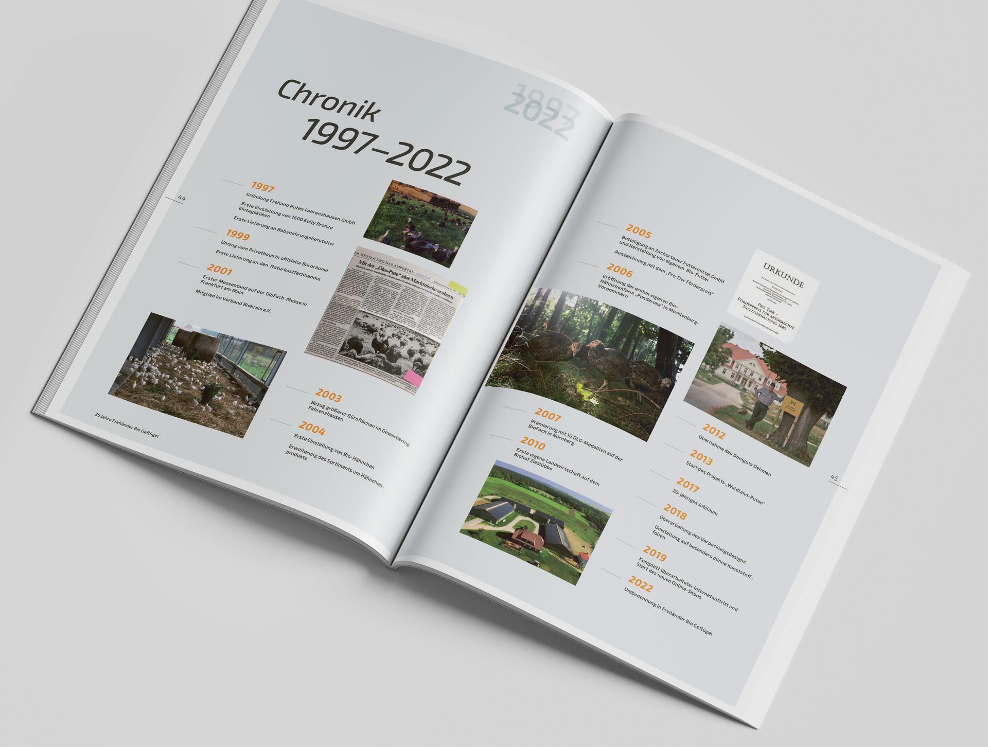 2020 erhielt ich von Freiländer Bio Geflügel den Auftrag ein Jubiläumsbuch für befreundete Unternehmen und Mitarbeiter zu entwickeln, die seit Beginn an der Entwicklung vom Start-up zur Nr. 2 der Branche Bio Geflügel Produzenten maßgeblich beteiligt waren.